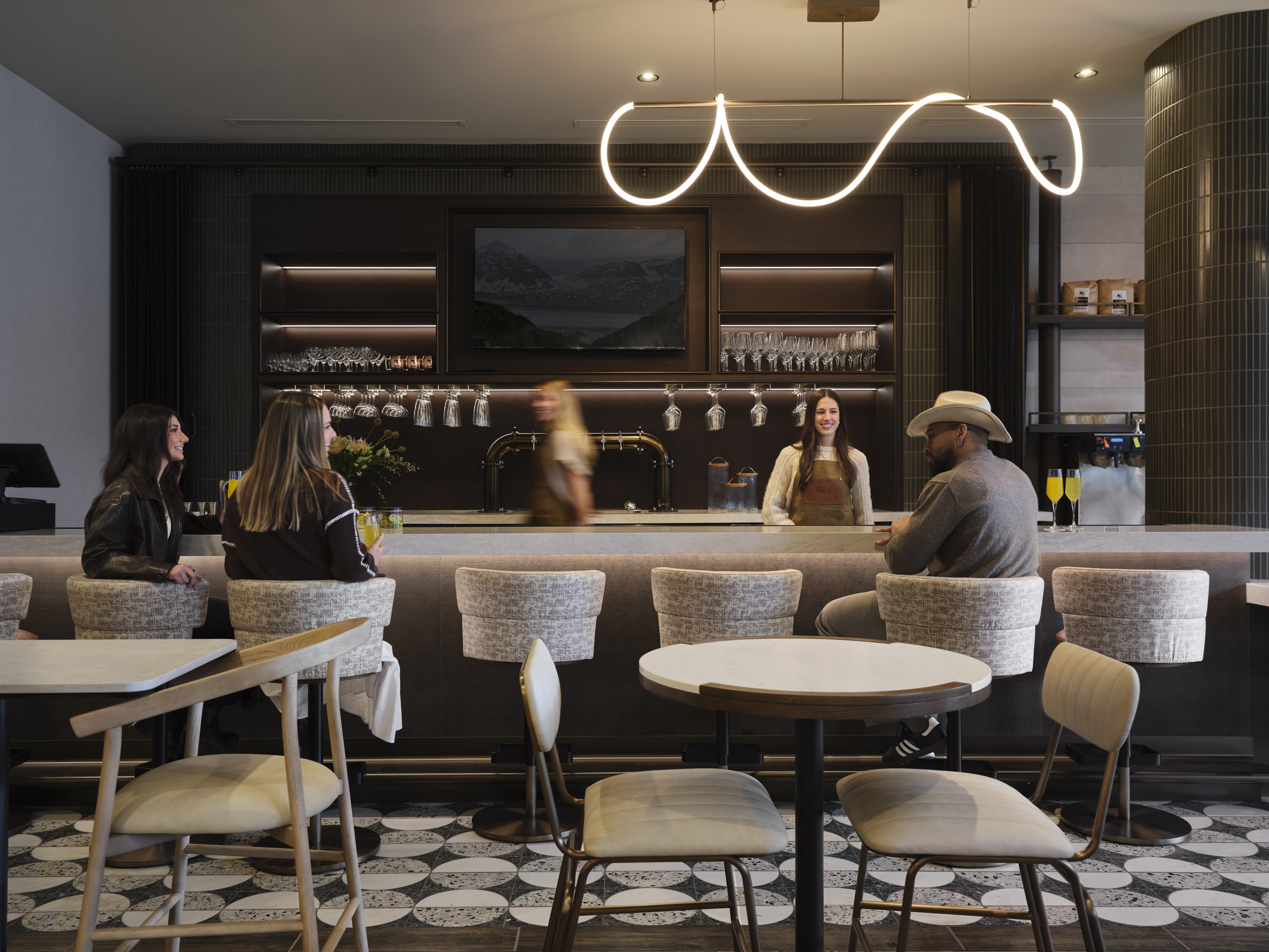 The team behind Motto includes Apple Hospitality REIT, which owns the hotel, and Chartwell Hospitality, which serves as its operator. Mortenson Development, Inc. led the development, with M.A. Mortenson Co. handling construction. ESa oversaw both architecture and interiors, working alongside Wild Muse Interiors, while KVD and Barge Civil Associates provided landscape architecture and civil engineering.